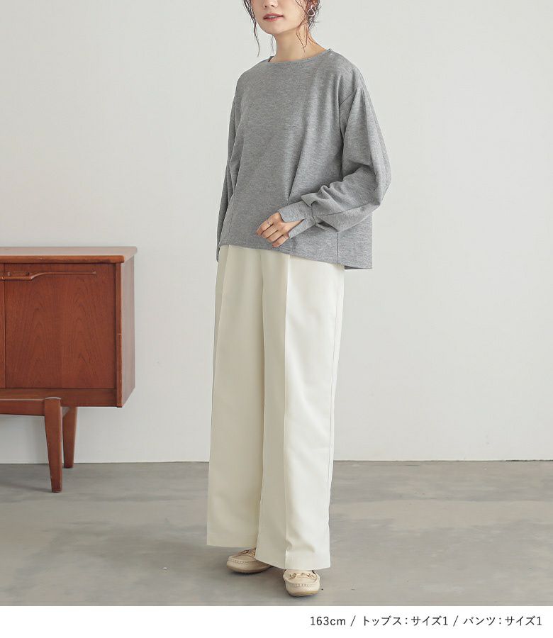 4. 『カフススリット微起毛カットソー×タックワイドスラックスコーデ2点SET』【メール便不可】【30】