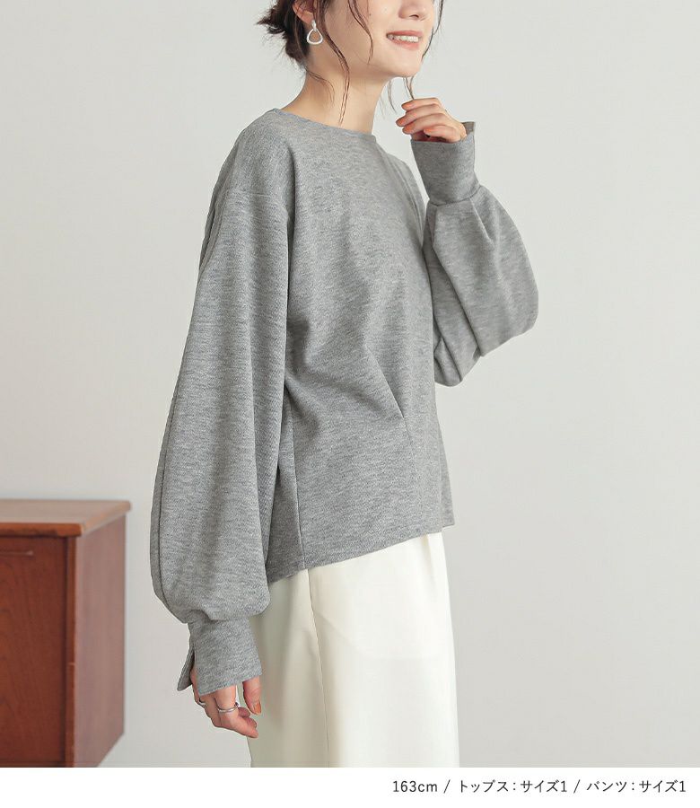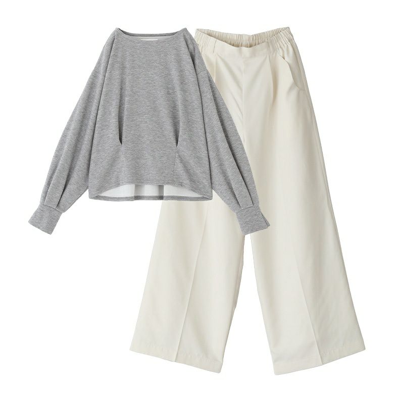 『カフススリット微起毛カットソー×タックワイドスラックスコーデ2点SET』