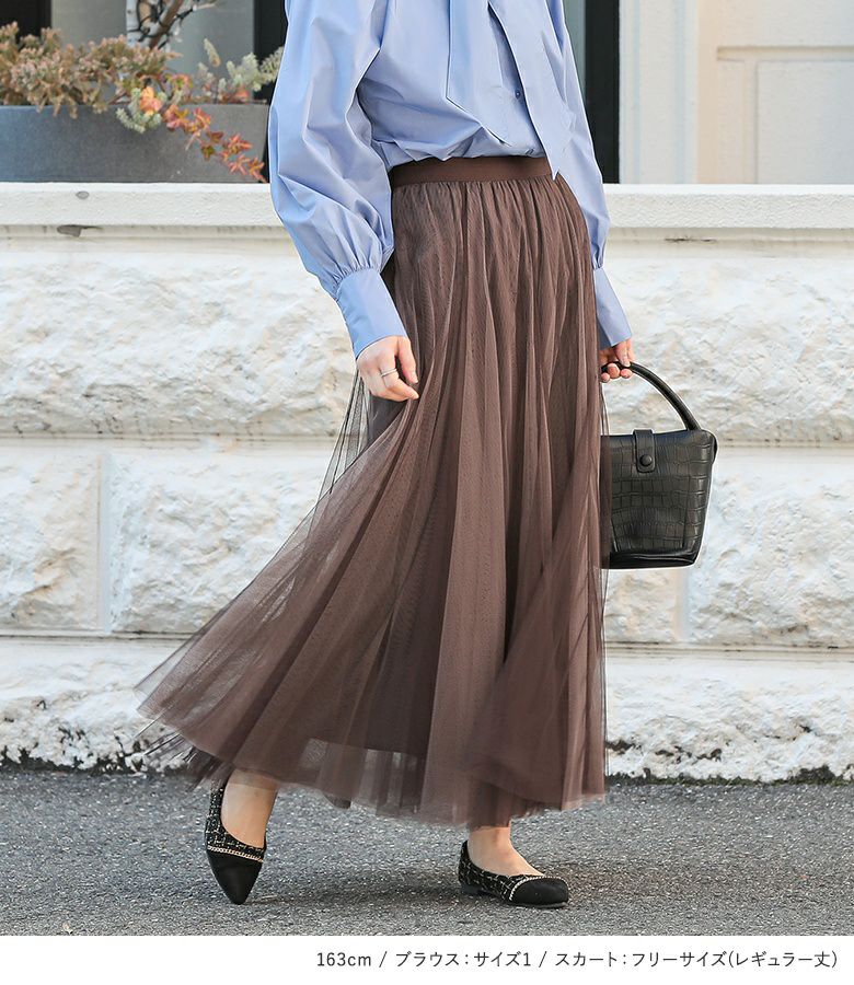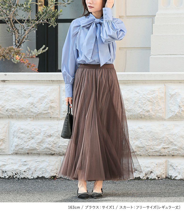 4. 『配色ボリュームチュールスカート×リボンタイ付きラグランブラウスコーデ2点SET』【メール便不可】【20】