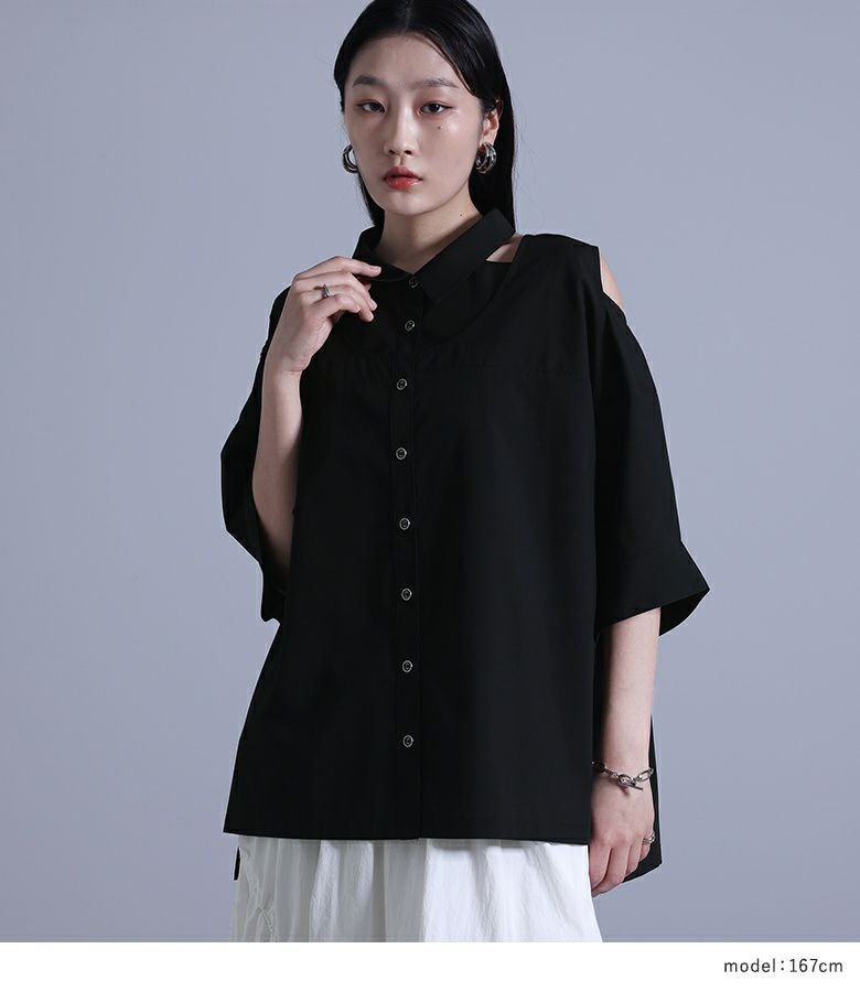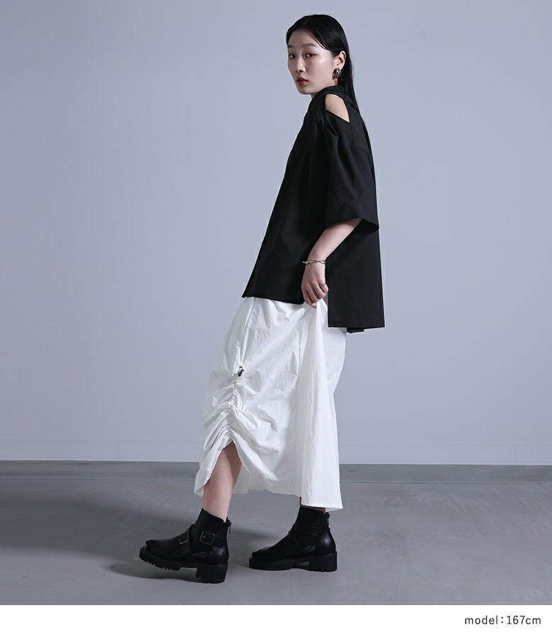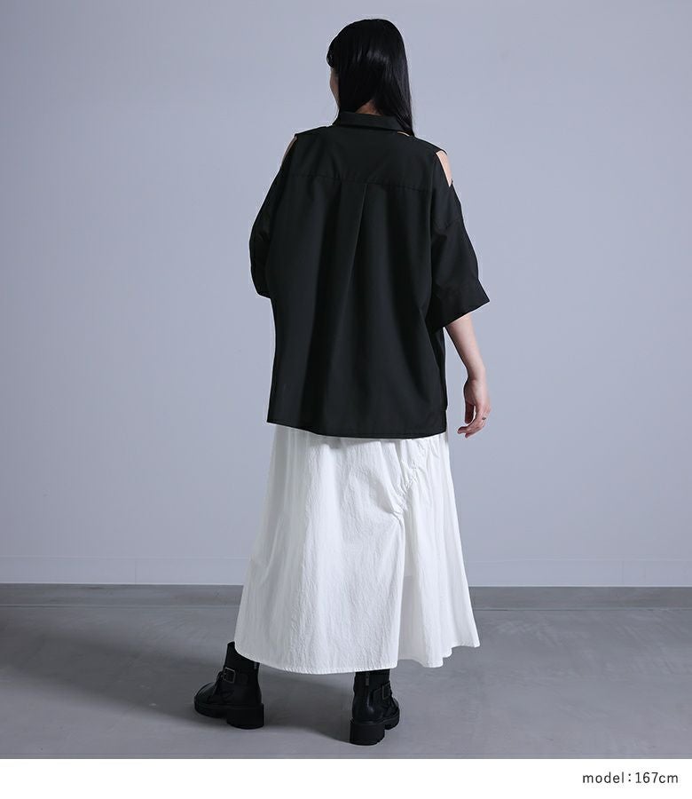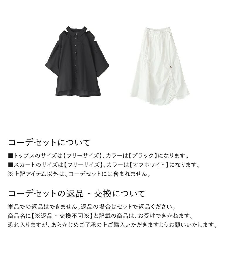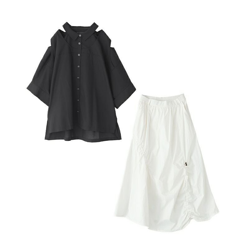 『カッティングデザインシャツ×変形シャーリングデザインスカートコーデ2点SET』