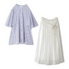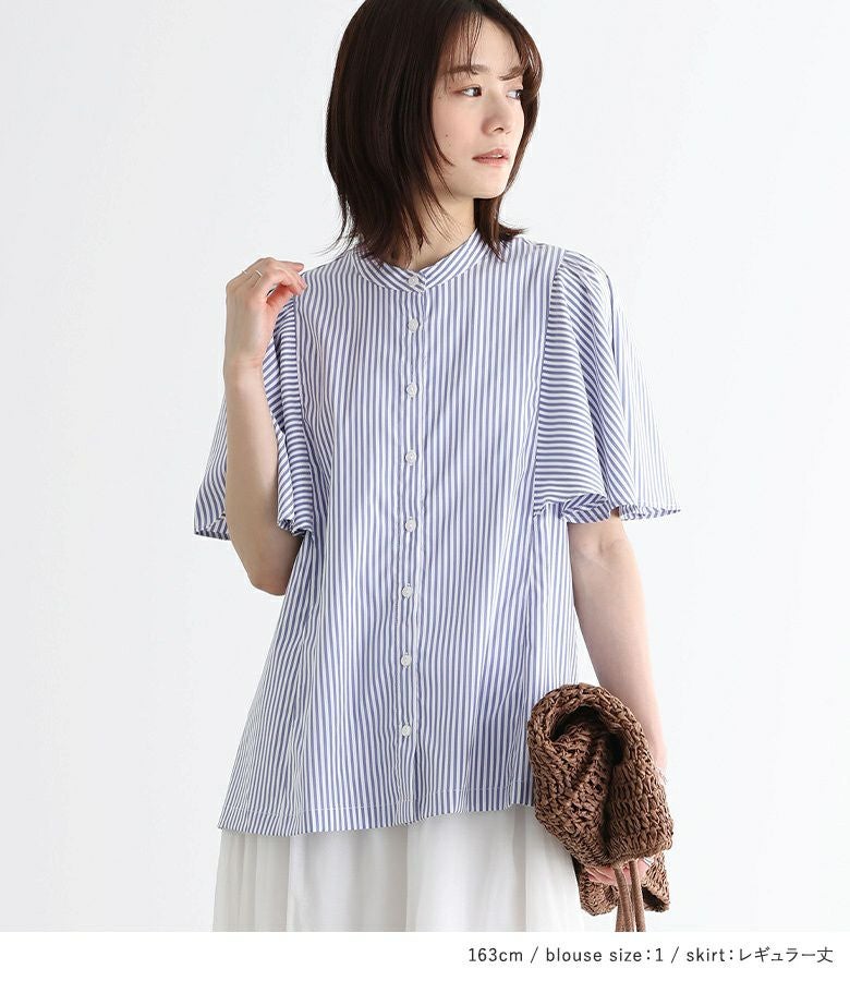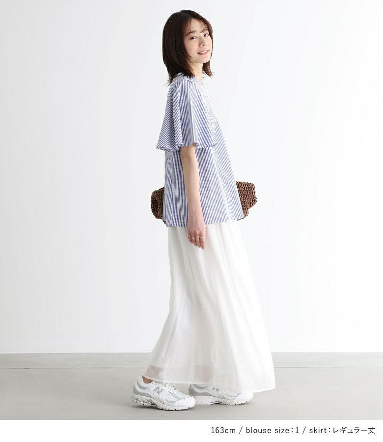4. 『ストライプ柄フレアスリーブブラウス×ふわさらロングスカートコーデ2点SET』【メール便不可】【15】