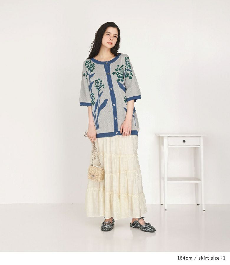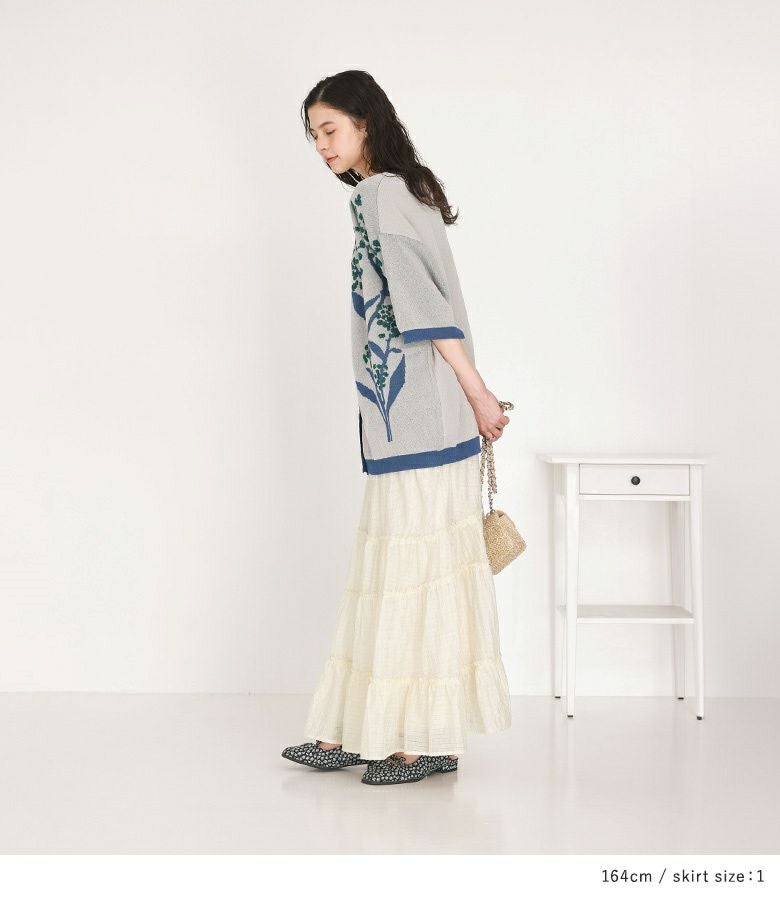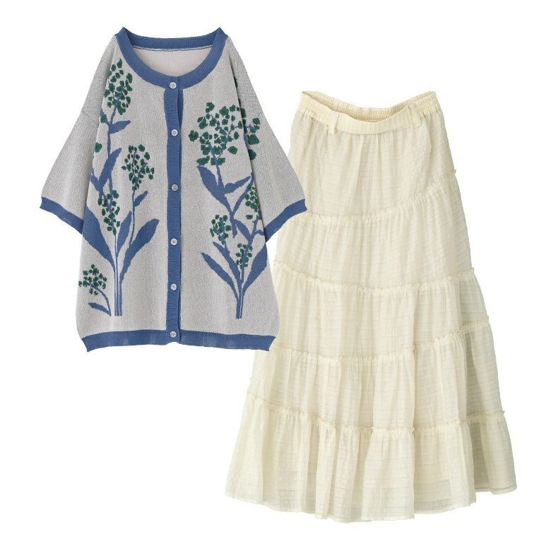 『ジャカードサマーニット×シアーティアードスカートコーデ2点SET』