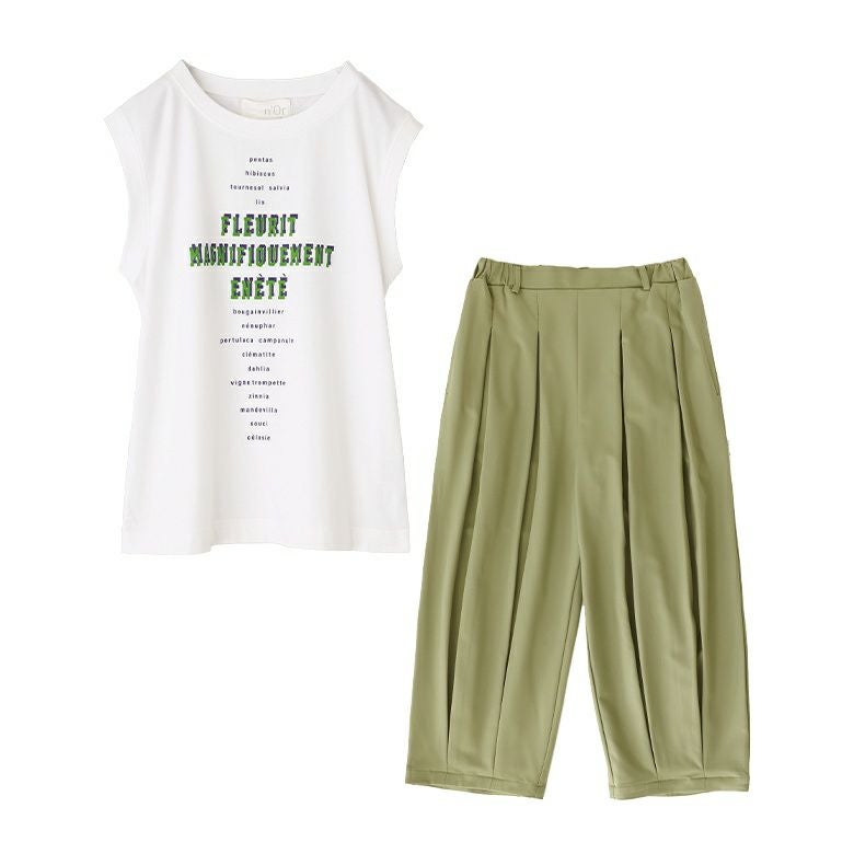 『ロゴフレンチスリーブTシャツ×ボックスタックアンクル丈パンツコーデ2点SET』