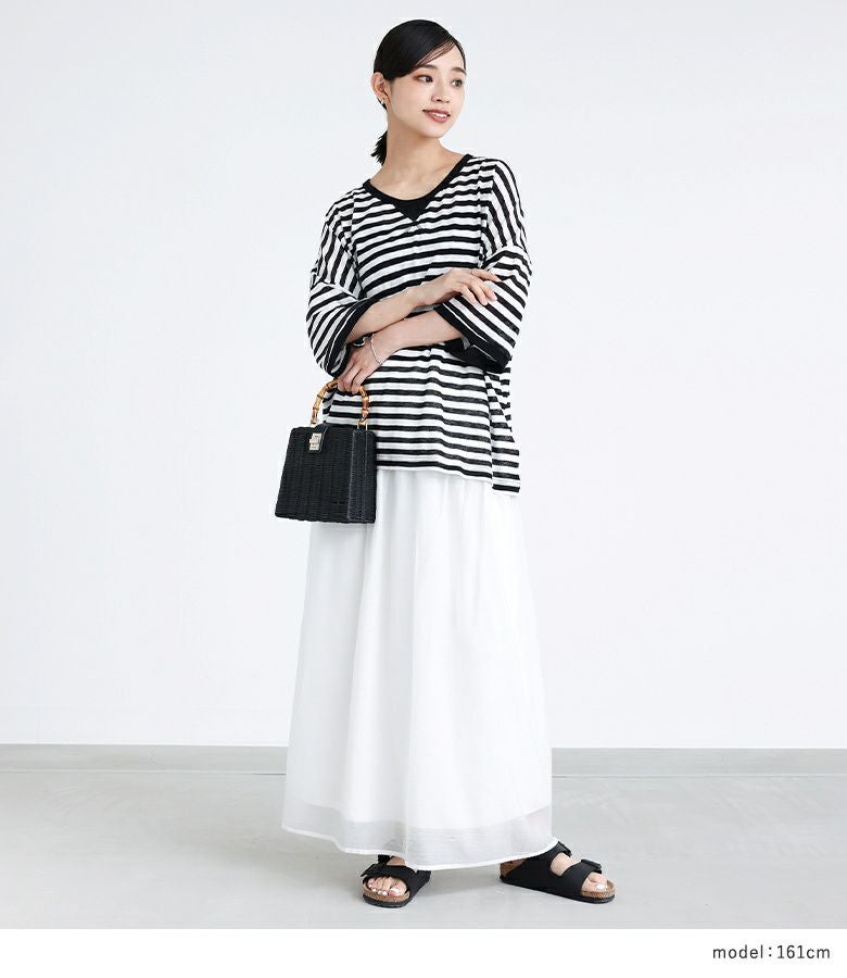 4. 『シアーボーダートップス×ふわさらロングスカートコーデ2点SET』【メール便不可】【15】