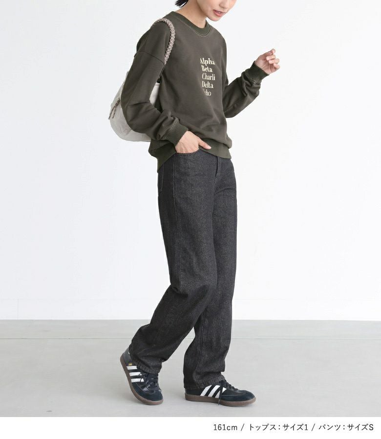 4. 『ロゴプリントミニ裏毛プルオーバー×ストレートデニムパンツコーデ2点SET』【メール便不可】【40】