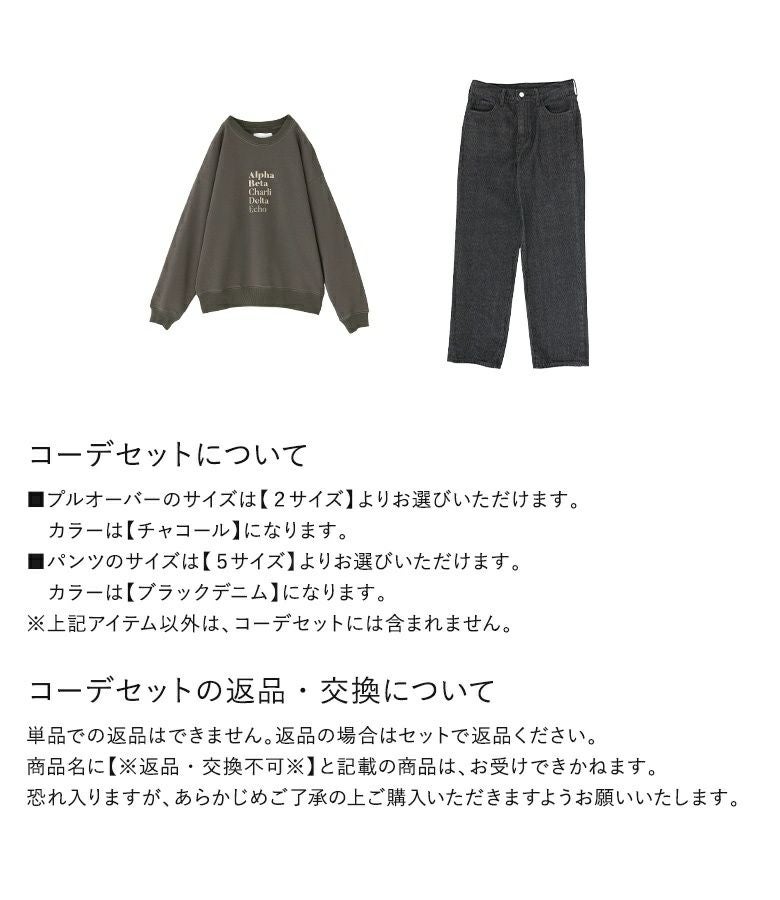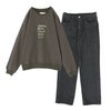 『ロゴプリントミニ裏毛プルオーバー×ストレートデニムパンツコーデ2点SET』