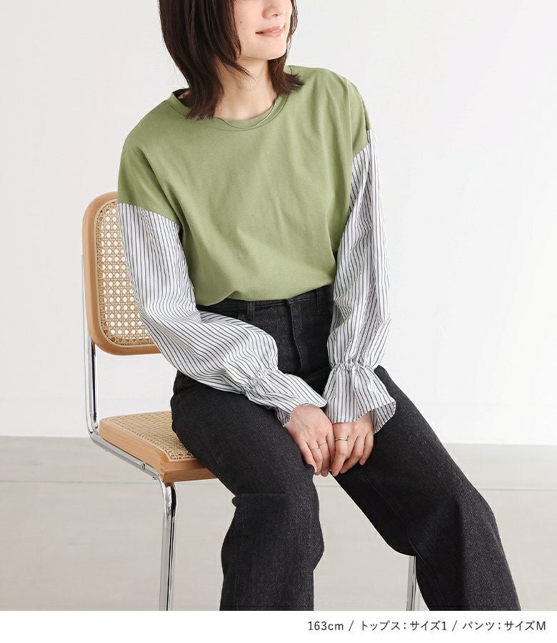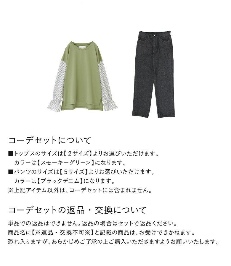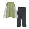 『異素材キャンディースリーブカットソー×ストレートデニムパンツコーデ2点SET』