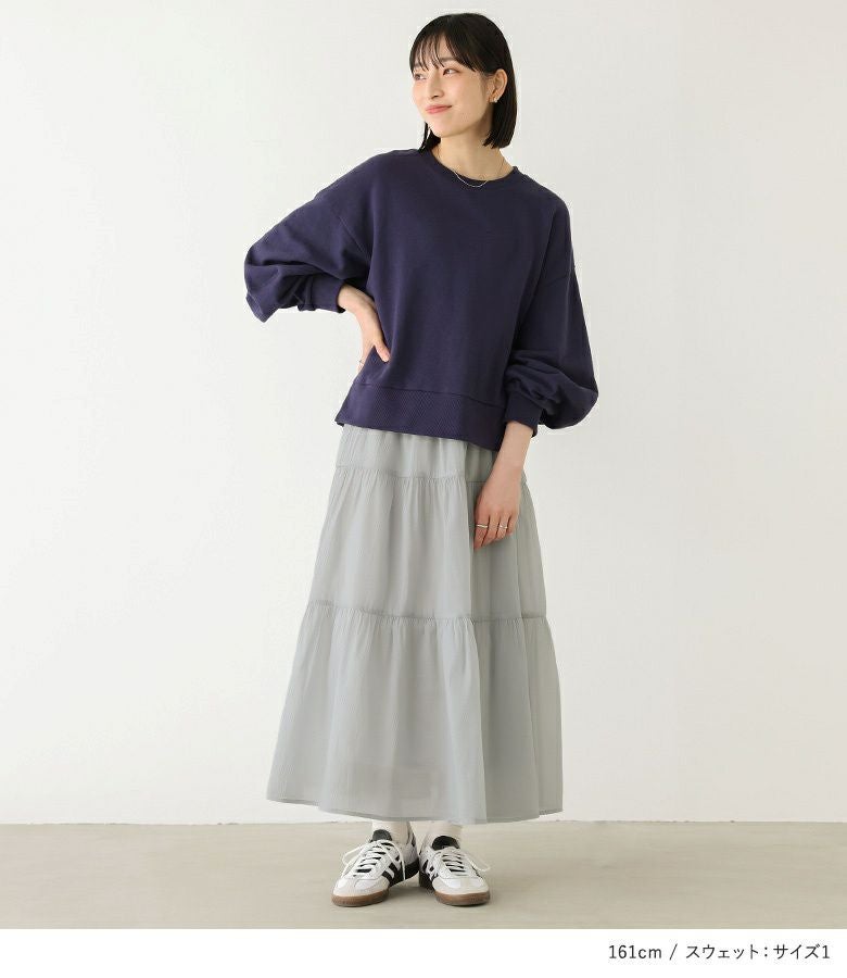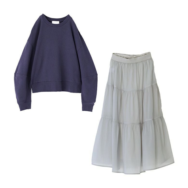 『立体袖ワンポイント刺繍スウェット×2wayシアーティアードスカートコーデ2点SET』
