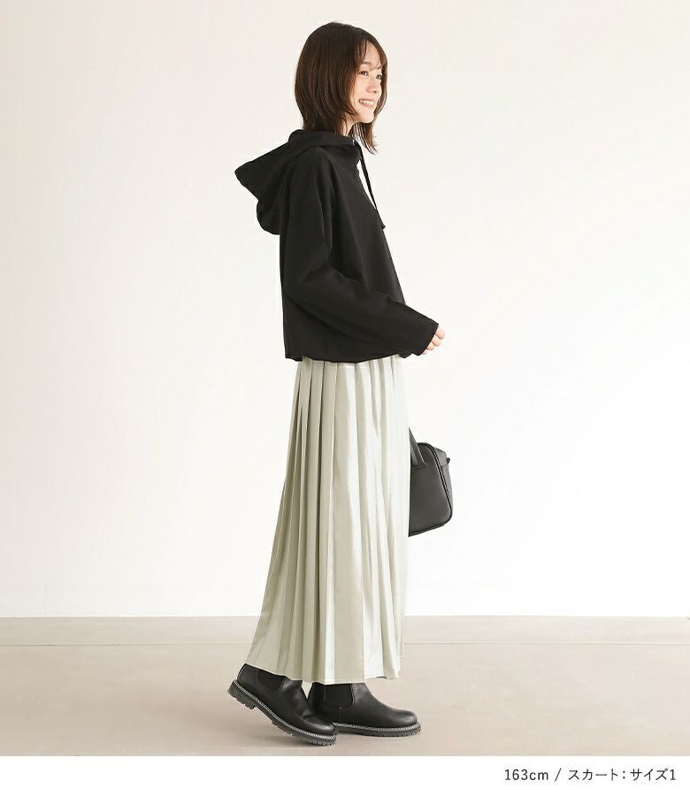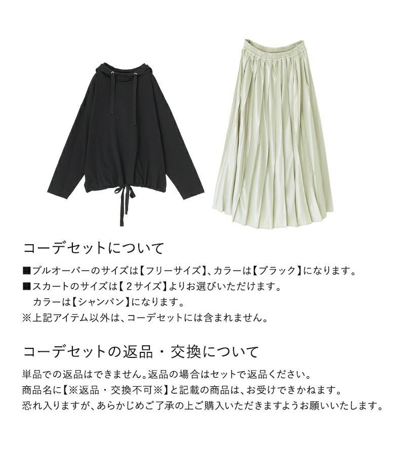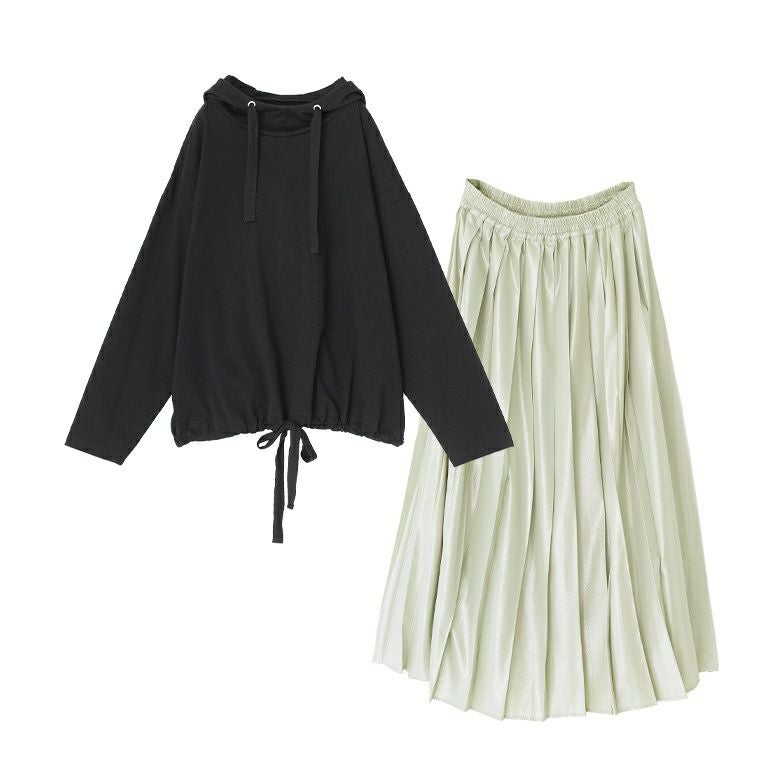 『スタンドフーディプルオーバー×メタリックプリーツスカートコーデ2点SET』