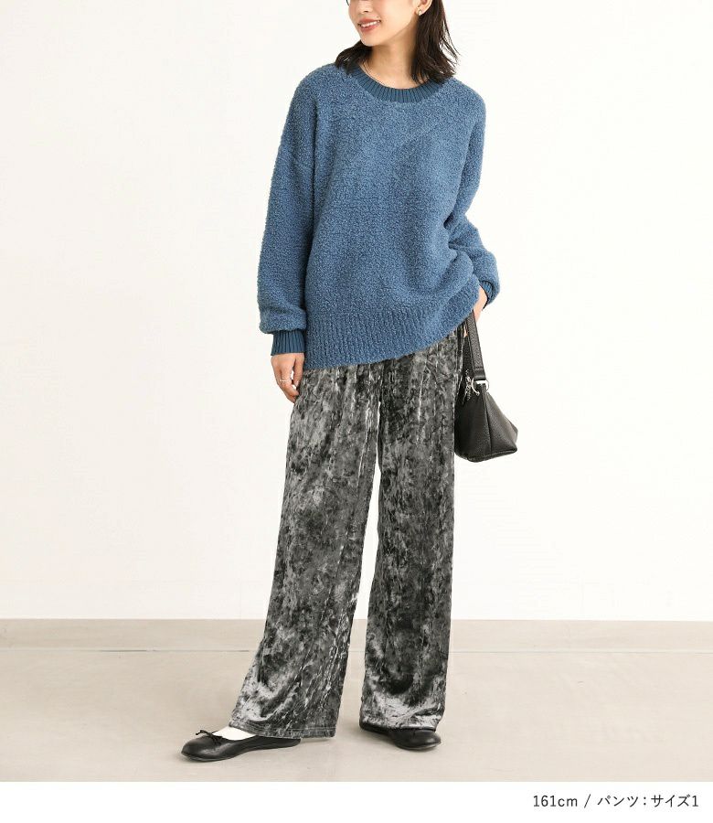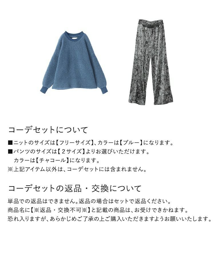4. 『配色ブークレニットプルオーバー×クラッシュベロアワイドパンツコーデ2点SET』【メール便不可】【40】