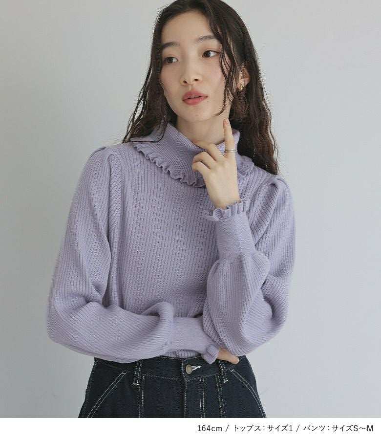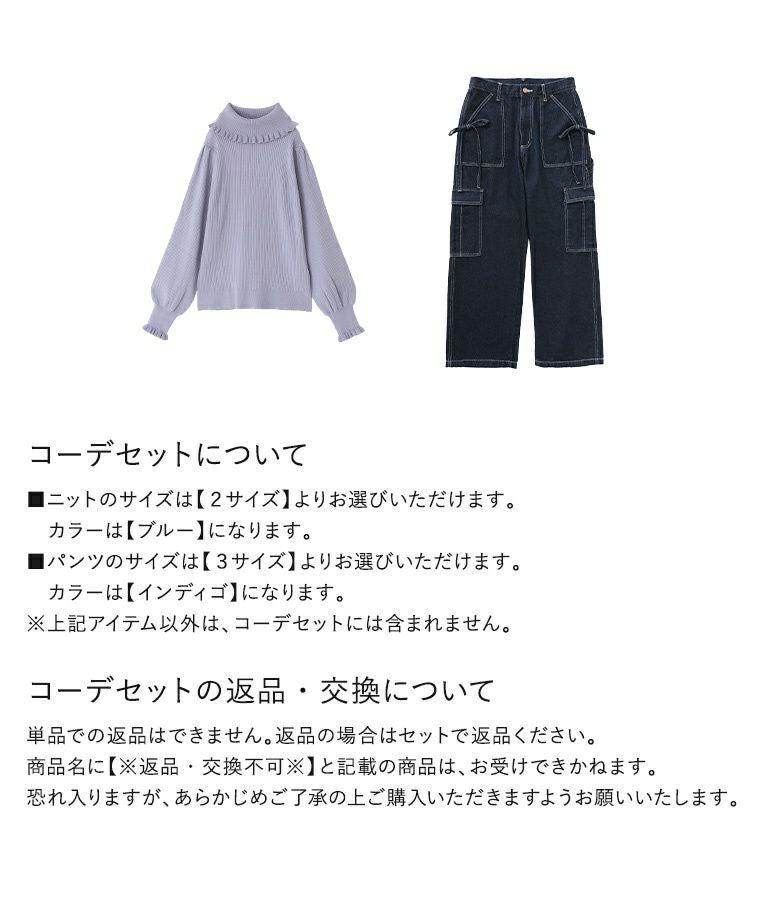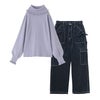 『フリルタートルネックニットプルオーバー×リボン付きデニムペインターパンツコーデ2点SET』