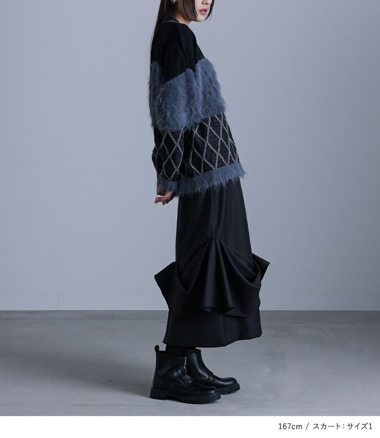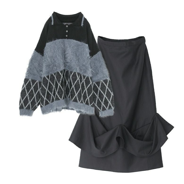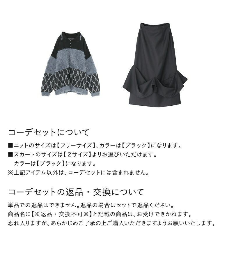 『シャギー切替ポロニット×タックドレープナロースカートコーデ2点SET』