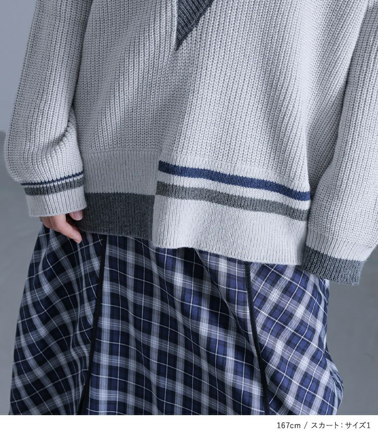 4. 【送料無料】『アシメ衿デザインニット×異素材切替コクーンチェックスカートコーデ2点SET』【メール便不可】【50】