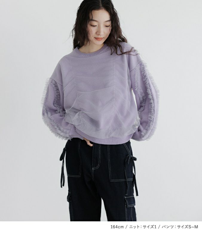 4. 【送料無料】『チュールレイヤーニット×リボン付きデニムコーデ2点SET』【メール便不可】【60】