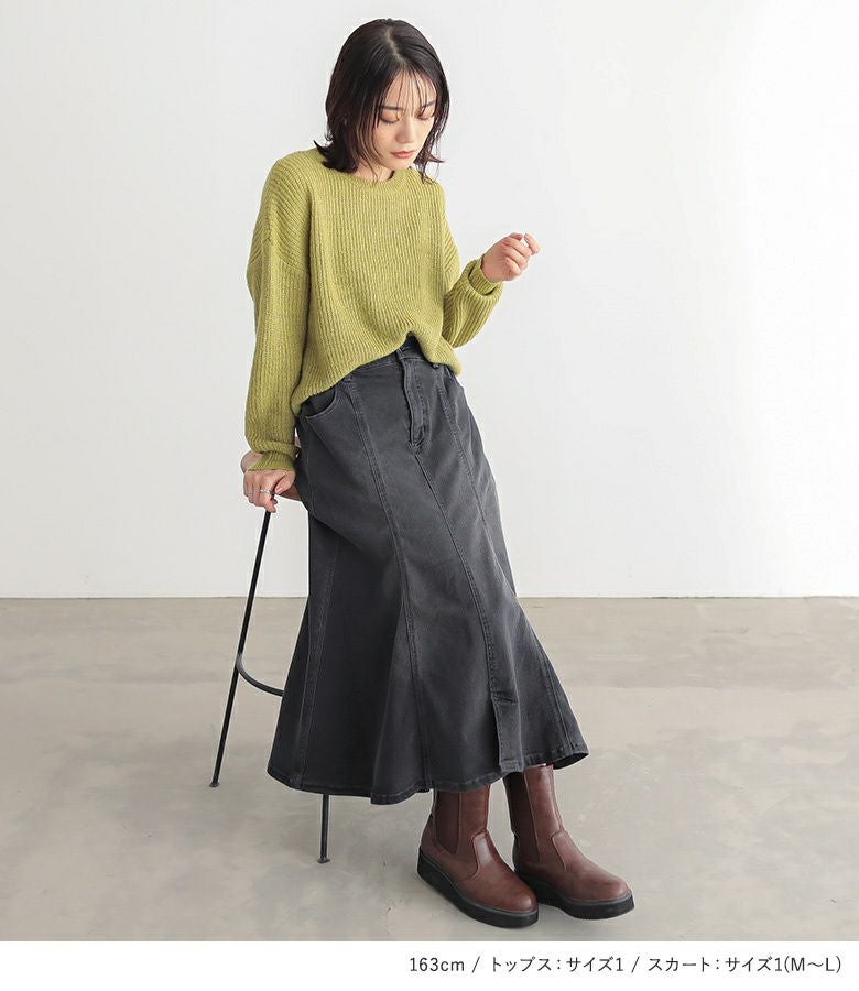 4. 【送料無料】『モヘヤタッチラメニット×パウダー裏起毛デニムマーメイドスカートコーデ2点SET』【メール便不可】【60】