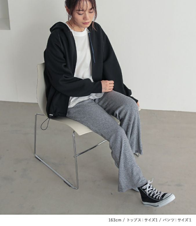 『シャツ生地プルオーバー×ダンボールパーカー×リブフレアパンツコーデ3点SET』