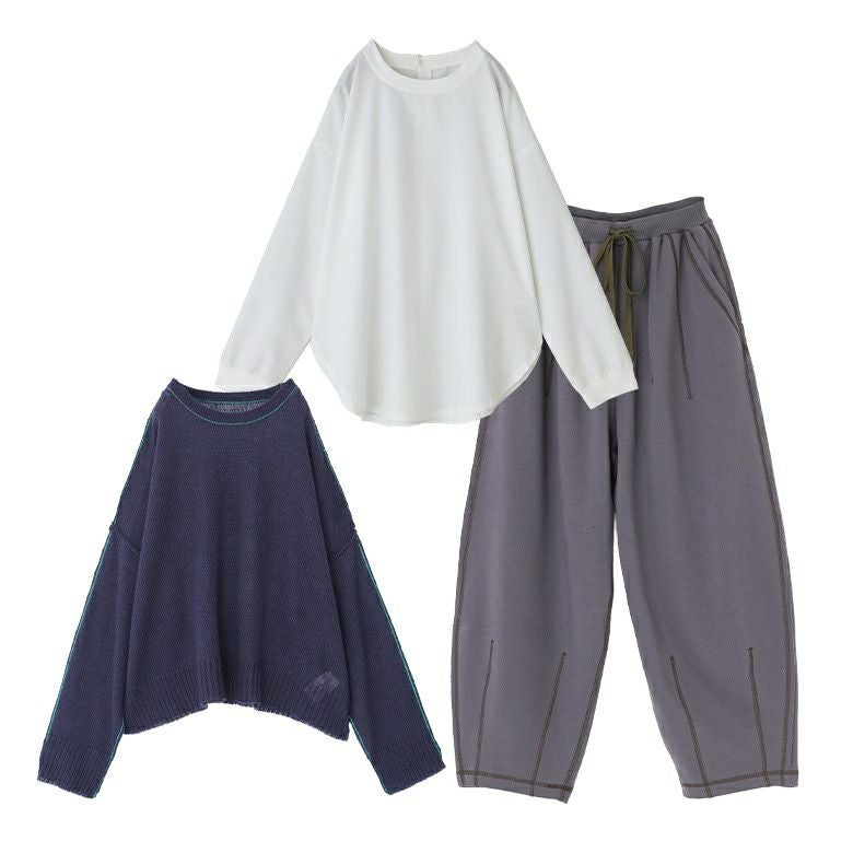 4. 【送料無料】『シアーニット×クルーネックプルオーバー×コクーンパンツコーデ3点SET』【メール便不可】【45】