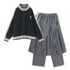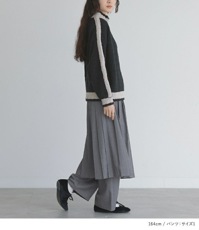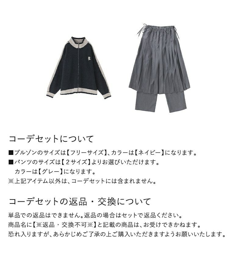 『ラインニットブルゾン×プリーツスカート×ストレートパンツセットコーデ2点SET』