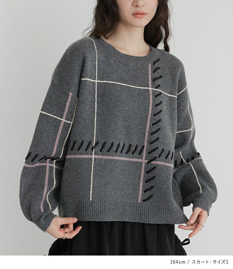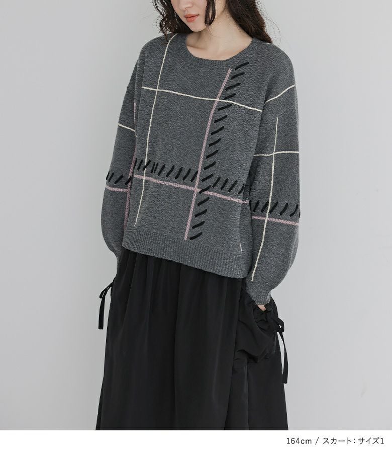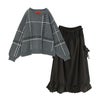 4. 【送料無料】『ジャカードチェックニットプルオーバー×ランダムヘムナイロンライクスカートコーデ2点SET』【メール便不可】【50】