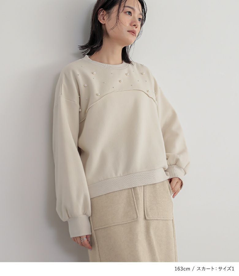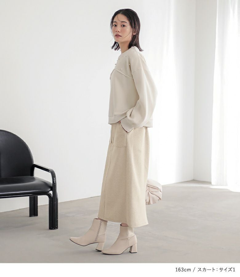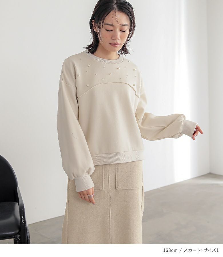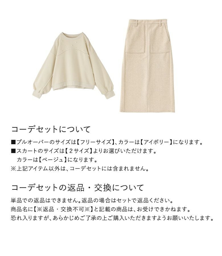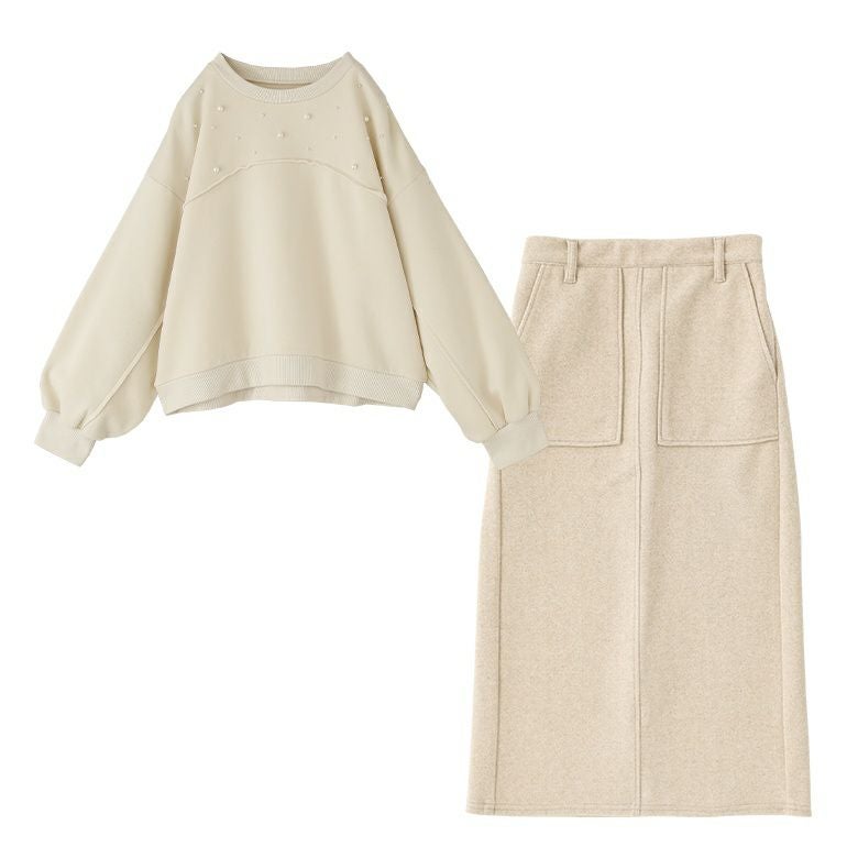 『起毛フェイクパールプルオーバー×フラノライクカットナロースカートコーデ2点SET』