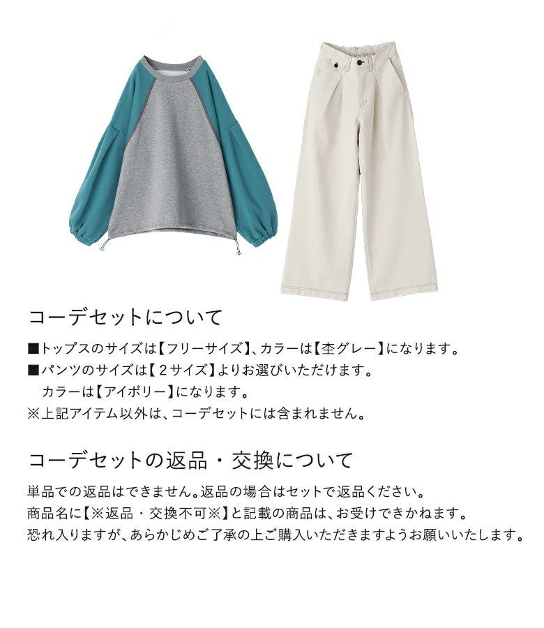 『裏起毛配色ラグランプルオーバー×配色ステッチチノパンツコーデ2点SET』