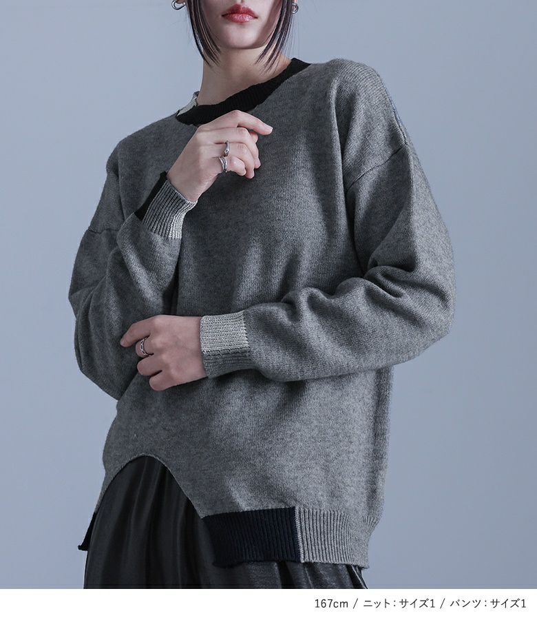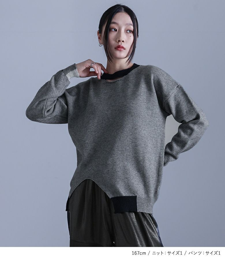 4. 【送料無料】『配色ラメ切替アシメニット×異素材デザインワイドパンツコーデ2点SET』【メール便不可】【30】