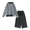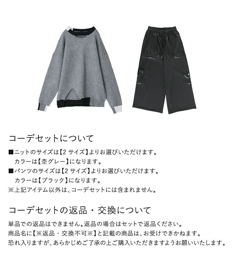 『配色ラメ切替アシメニット×異素材デザインワイドパンツコーデ2点SET』