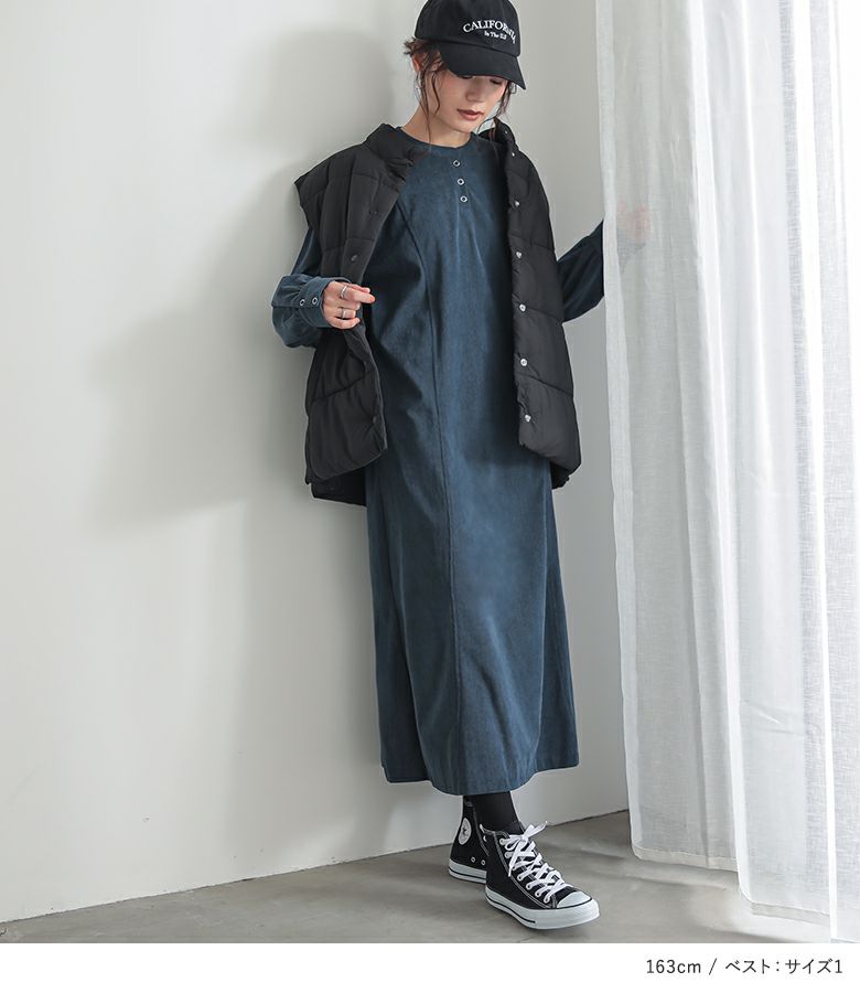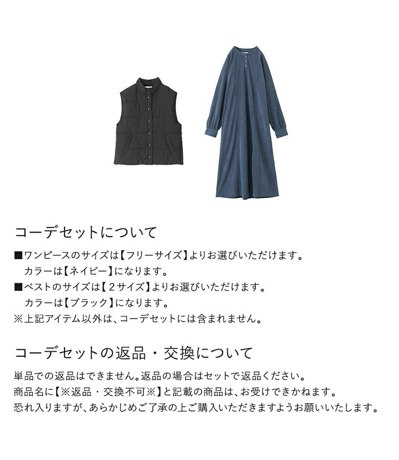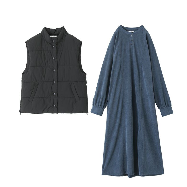 【送料無料】『コーデュロイワンピース×中綿ベストコーデ2点SET』