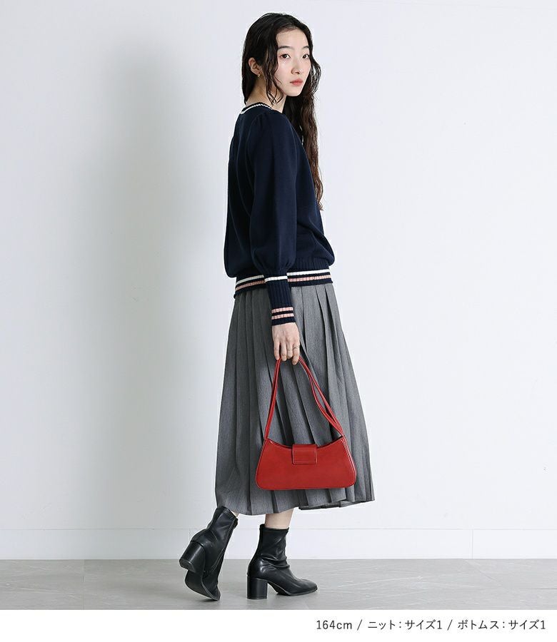 4. 【送料無料】『配色ラインパフスリーブニット×プリーツスカート×ストレートパンツセットコーデ2点SET』【メール便不可】【50】