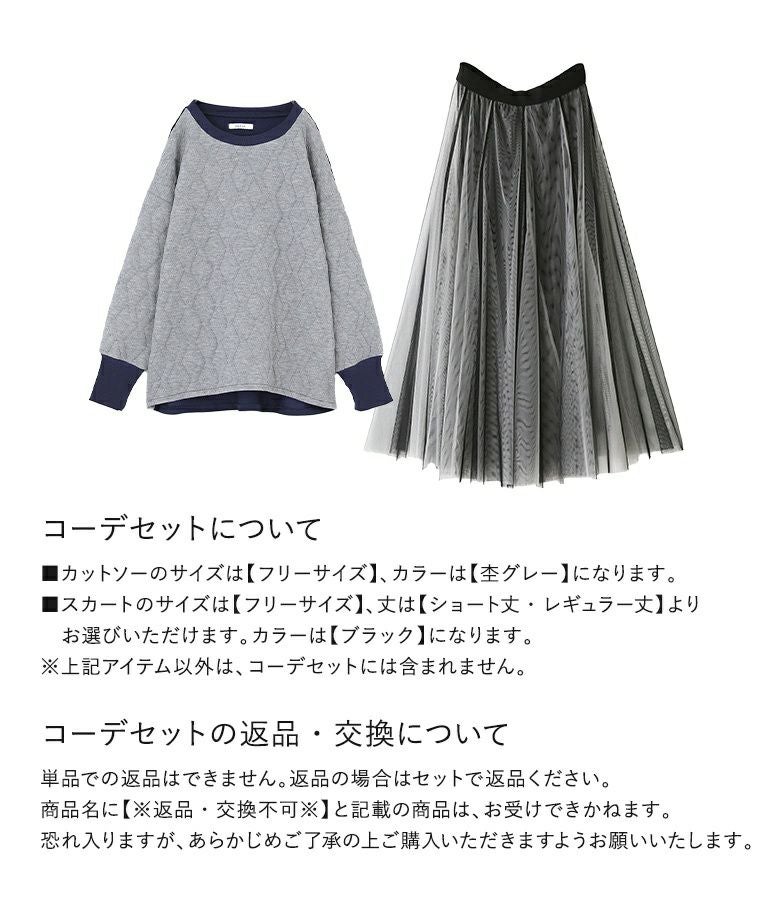 『エンボス加工カットソー×配色ボリュームチュールスカートコーデ2点SET』