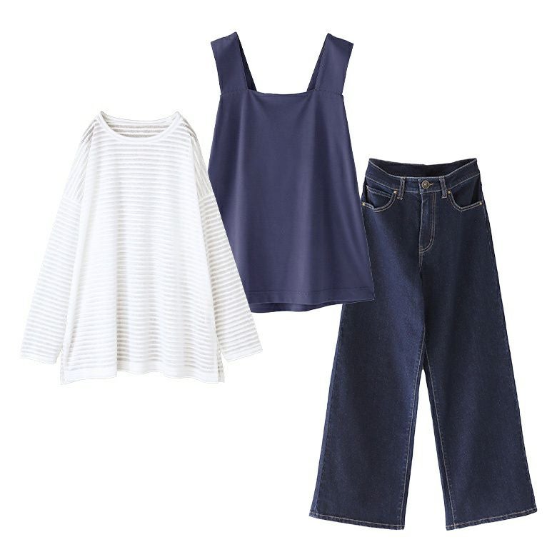 他の画像を見る 送料無料★届いてすぐにお洒落に変身3点コーデSET♪ 【送料無料】『透け感カットソー×スクエアタンクトップ×デニムパンツコーデ3点SET』※返品・交換不可※【メール便不可】【25】 ¥ 10,850 税込 SOLD OUT (0)