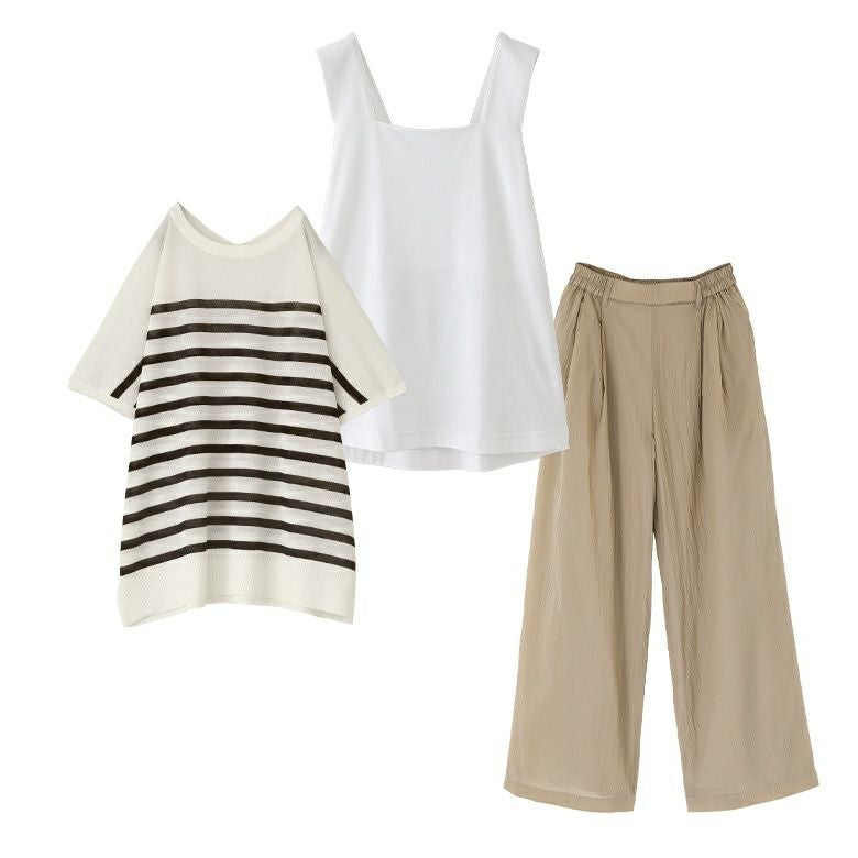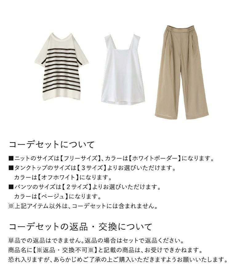 他の画像を見る 送料無料★届いてすぐにお洒落に変身3点コーデSET♪ 【送料無料】『UVシアーニット×スクエアタンク×シアータックパンツコーデ3点SET』※返品・交換不可※【メール便不可】【25】 ¥ 10,359 税込 SOLD OUT (0)