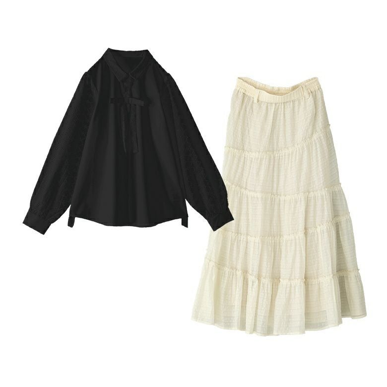 他の画像を見る 送料無料★届いてすぐにお洒落に変身2点コーデSET♪ 【送料無料】『コットンレースリボン付きブラウス×シアーティアードスカートコーデ2点SET』【メール便不可】【30】 ¥ 14,960 税込 (0)