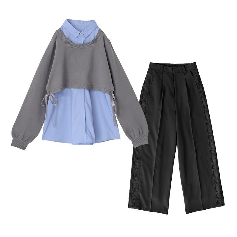 他の画像を見る 送料無料★届いてすぐにお洒落に変身2点コーデSET♪ 【送料無料】『シャツドッキングニットプルオーバー×脇レースパンツコーデ2点SET』【メール便不可】【30】 ¥ 13,960 税込 (0)
