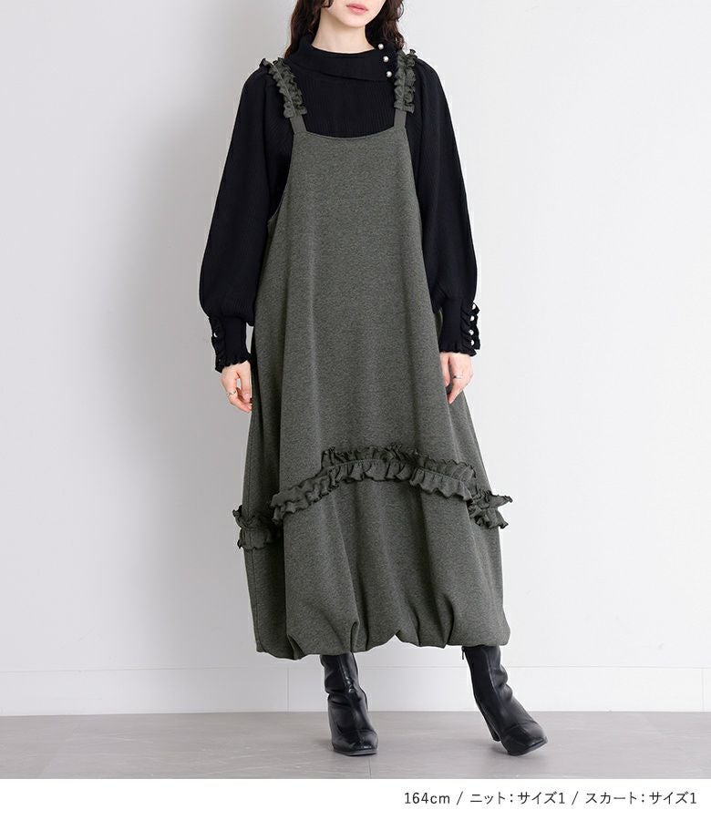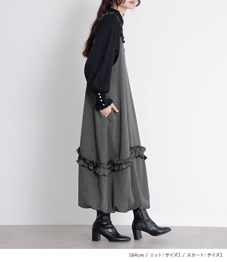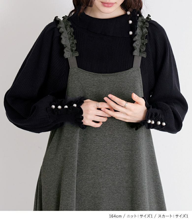他の画像を見る 送料無料★届いてすぐにお洒落に変身2点コーデSET♪ 【送料無料】『フェイクパール付きフリルリブニット×裏シャギーフリルバルーンジャンスカコーデ2点SET』【メール便不可】【60】 ¥ 15,950 税込 (0)