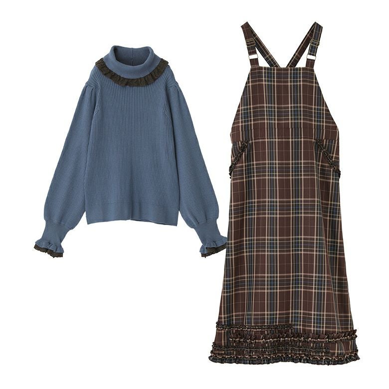 他の画像を見る 送料無料★届いてすぐにお洒落に変身2点コーデSET♪ 【送料無料】『チェックフリルジャンパースカート×レースフリルリブタートルニットコーデ2点SET』【メール便不可】【60】 ¥ 13,960 税込 SOLD OUT (0)