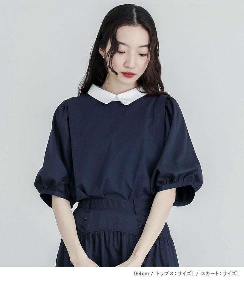 4. 【送料無料】『パフスリーブカットソー×ギャザーフレアスカートコーデ2点SET』【メール便不可】【40】