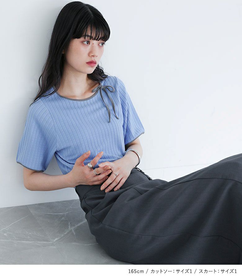 『パイピングリボンカットソー×レースペチ付きナロースカートコーデ2点SET』