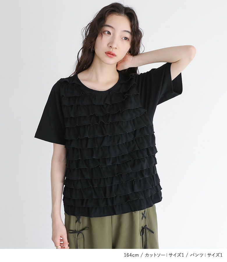 4. 【送料無料】『フリルカットソー×チュール切替レースアップワイドパンツコーデ2点SET』【メール便不可】【30】