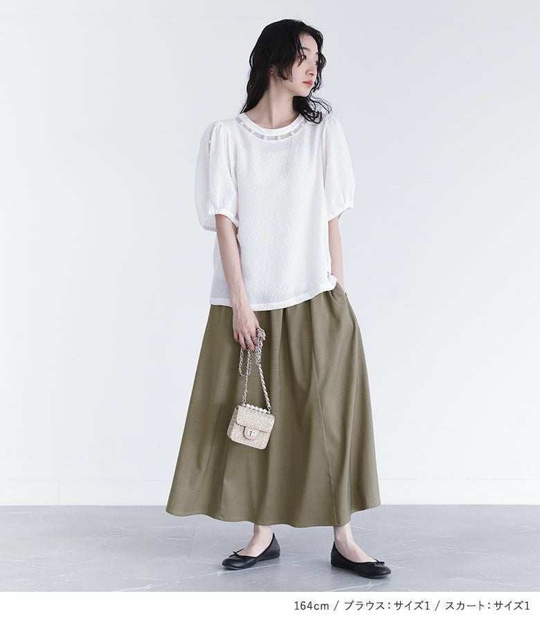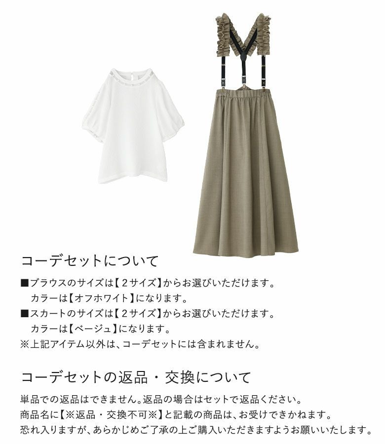 4. 【送料無料】『フェイクパール付きフラワージャカードブラウス×フリルサスペンダー付きフレアスカートコーデ2点SET』【メール便不可】【40】