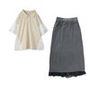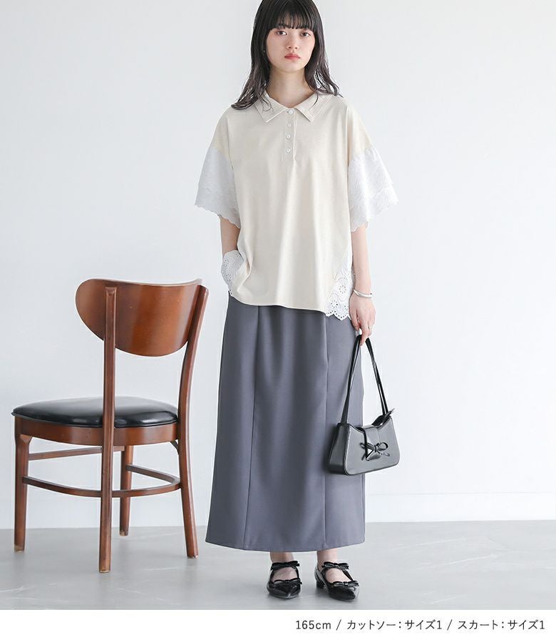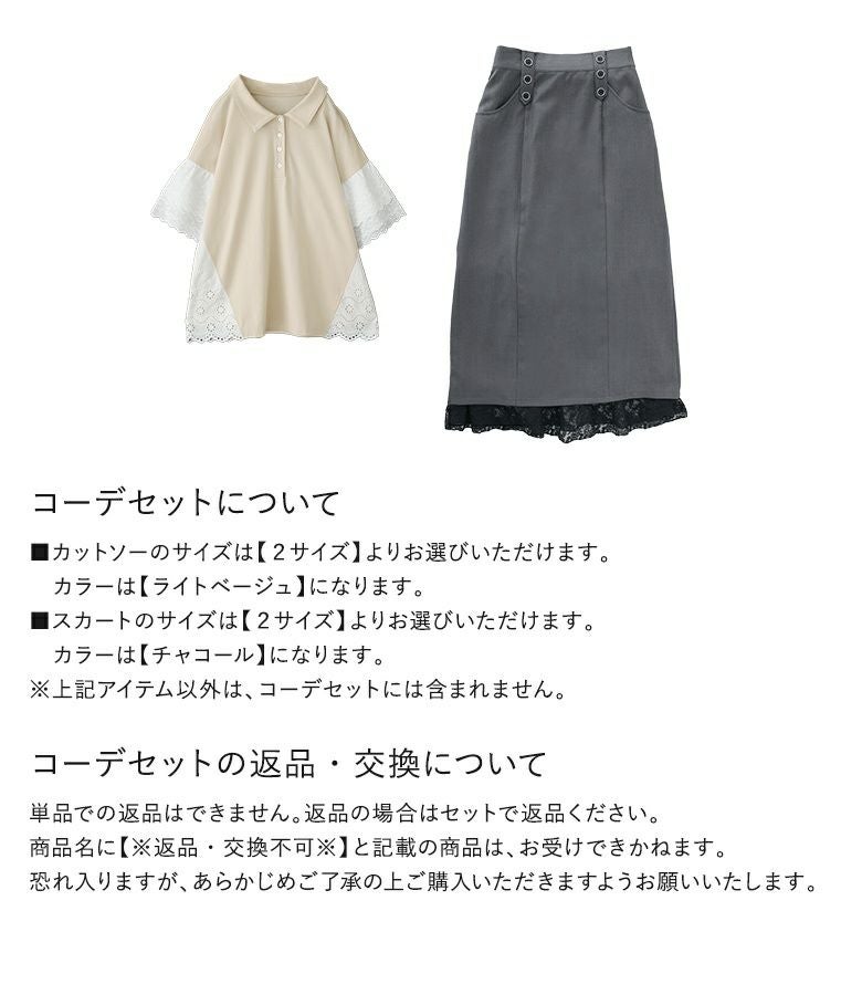 『コットンレース切り替えポロカットソー×レースペチ付きナロースカートコーデ2点SET』