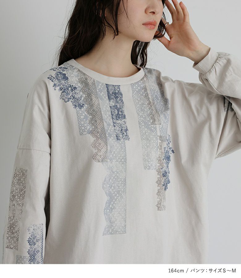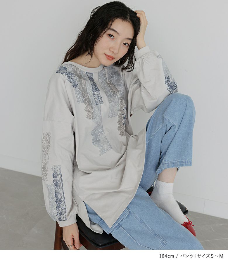 『レースプリントロンT×リボン付きデニムペインターパンツコーデ2点SET』