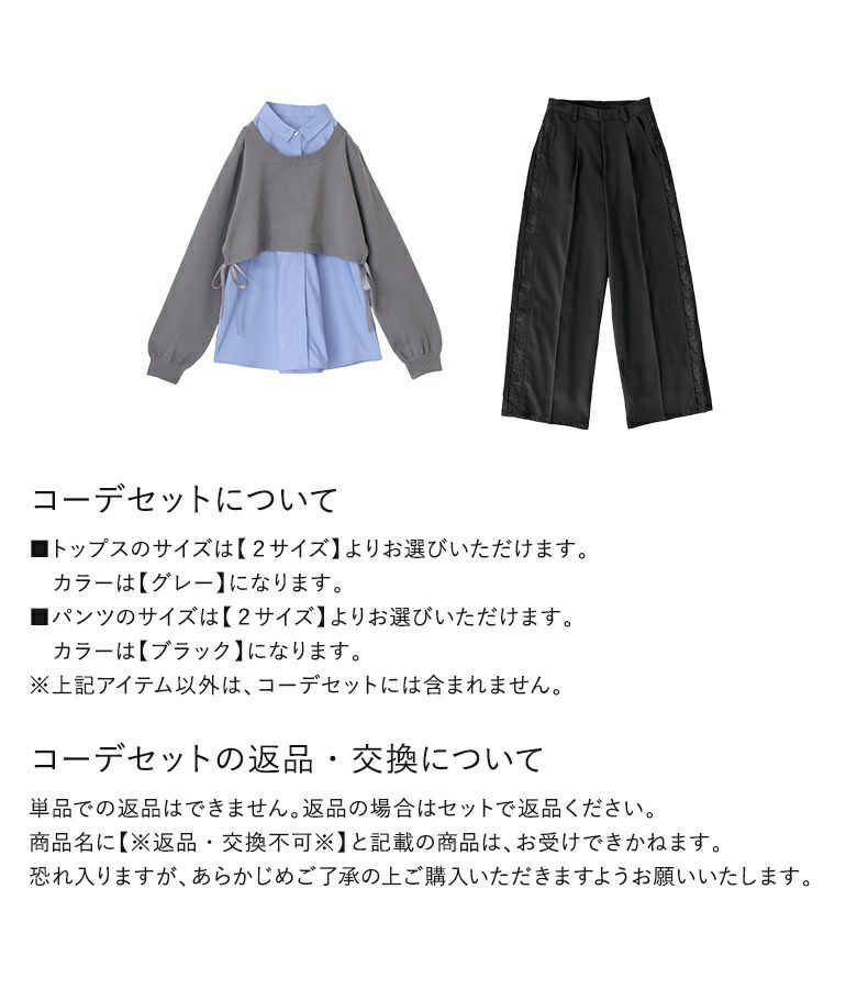 『シャツドッキングニットプルオーバー×脇レースパンツコーデ2点SET』
