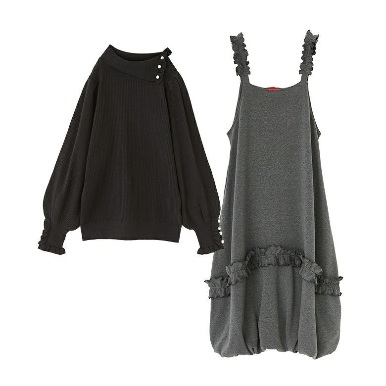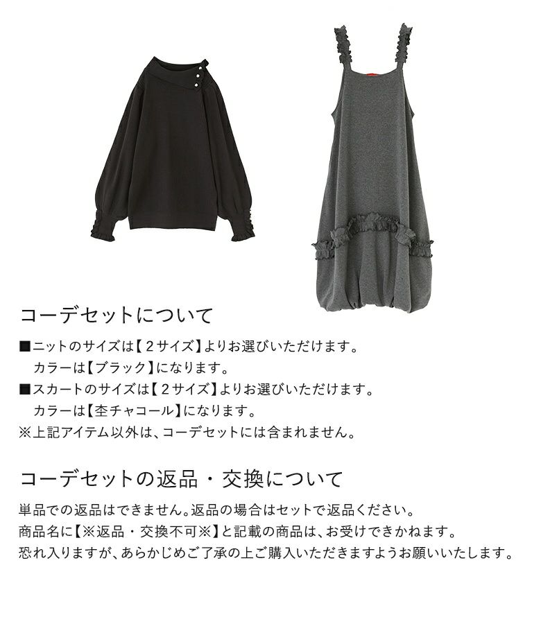 『フェイクパール付きフリルリブニット×裏シャギーフリルバルーンジャンスカコーデ2点SET』