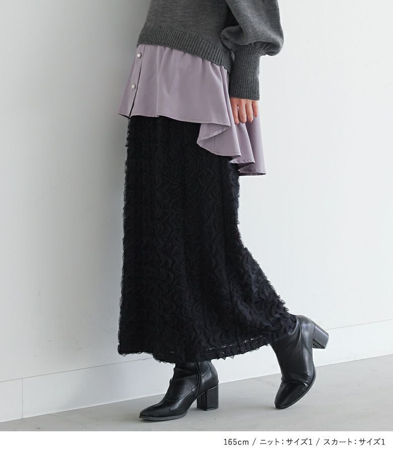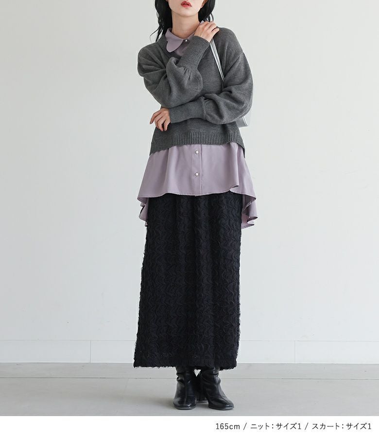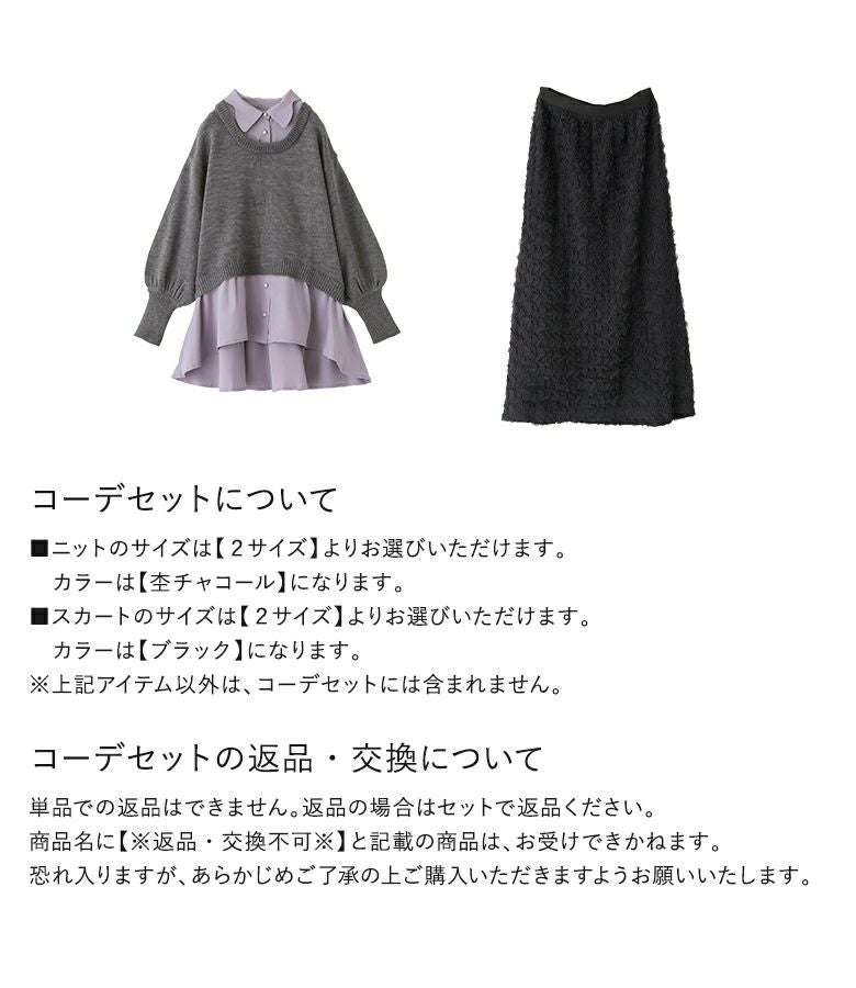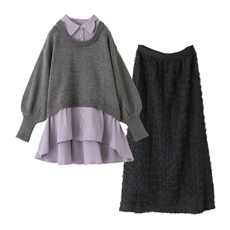 『シャツドッキングニット×ウェーブチュールレーススカートコーデ2点SET』