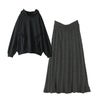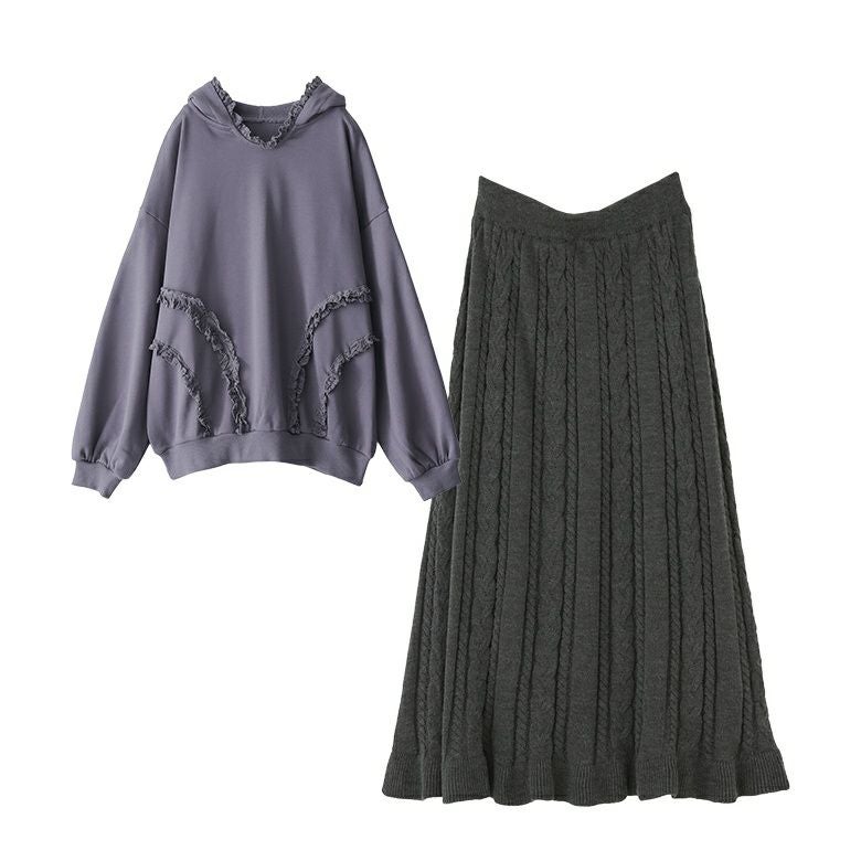 『ケーブルニットフレアスカート×テープレーススウェットパーカーコーデ2点SET』