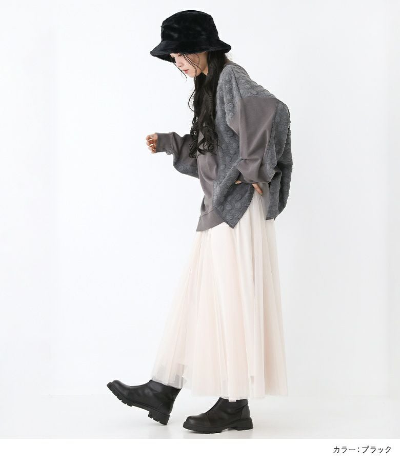 シンプルなデザインなのでボトムスを問わず合わせやすいアイテム。カジュアルなスタイリングからワンピースなどにも取り入れやすい万能なブーツです。