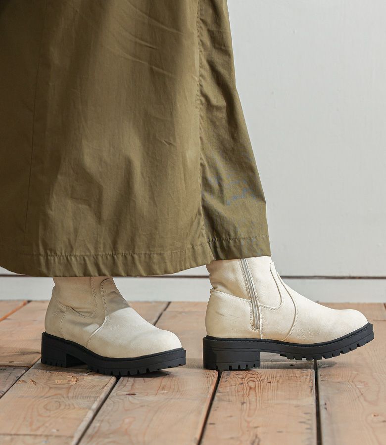 全体的に大きすぎる感じはなく、厚手のソックスと合わせても程よいゆとりがありました。薄手ソックスと合わせてもブーツなので脱げる心配もなく、安定感があります。幅広の方や甲高の方はワンサイズ大きめのLサイズを選ぶと厚手の靴下と合わせた時も気にならず着用できそうです。