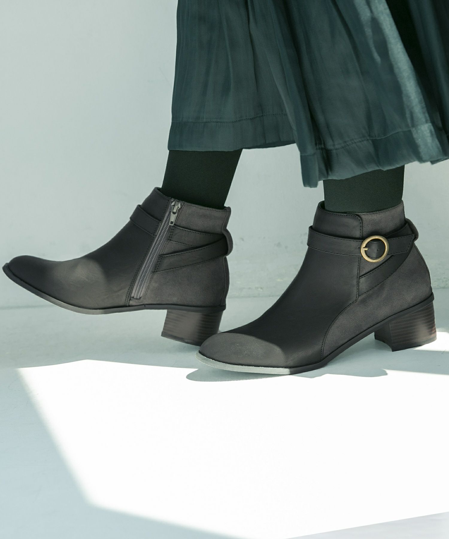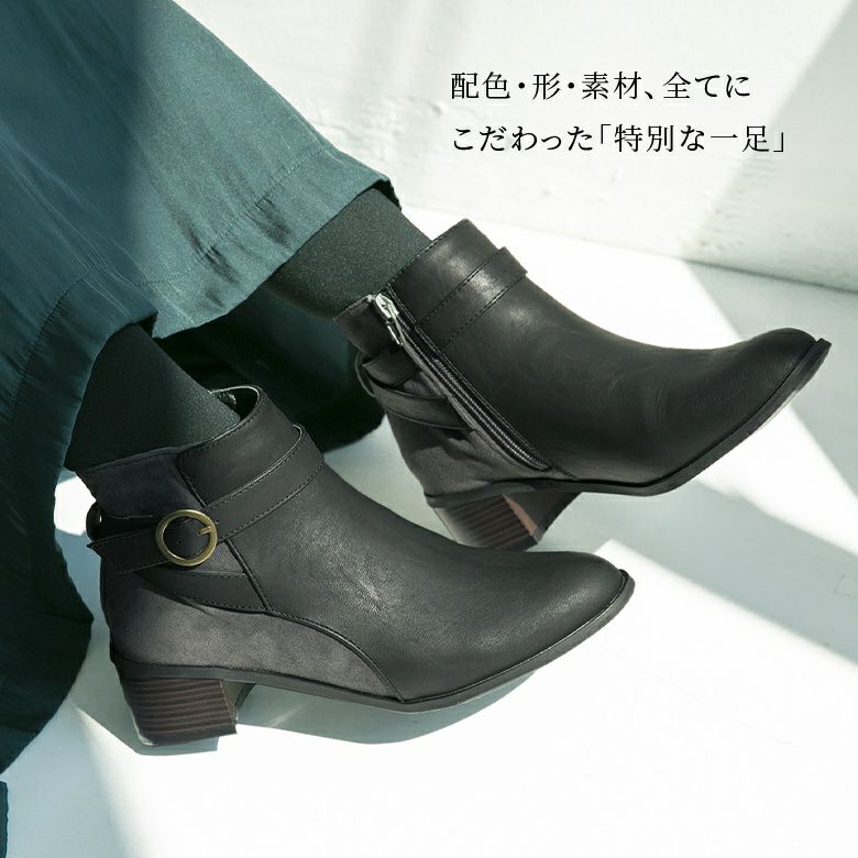 安定感のある太ヒールとクッション付きで歩きやすいのはもちろん、サイドファスナーで着脱も楽にできる、便利な一足です♪
