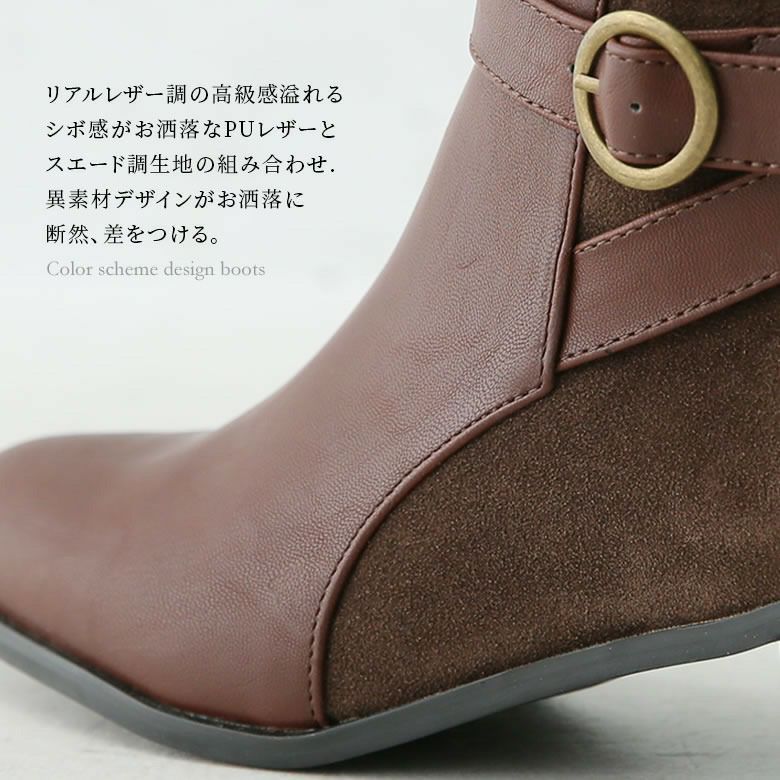 高級感あるリアルレザー調のPUレザーと、スエード調生地の異素材デザインがお洒落に断然差をつける。